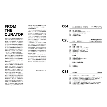 而在專欄部分,更收錄了日本百年鉛筆大廠Tombow如何更新商標、網頁字型的發展趨勢、字體排印與閱讀的關聯、國外經常使用的字體,還有小林章與日本手寫看板職人在台北舉辦的工作坊實況紀錄等內容。
