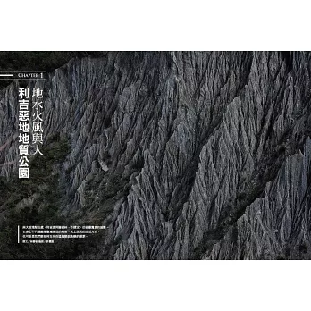 本書由《南風》作者許震唐、與曾獲金鼎獎攝影獎的資深記者黃世澤操刀九座地質公園攝影,透過攝影的思考呈現地質特色,使照片兼具人文、美感與知識性。本書以攝影集的品質呈現九座地質公園。透過這些攝影,你將發現原來你曾去過的地方有更深刻的美學,而你不曾去過的地方,則是你下一個亟欲前往一探究竟之地。