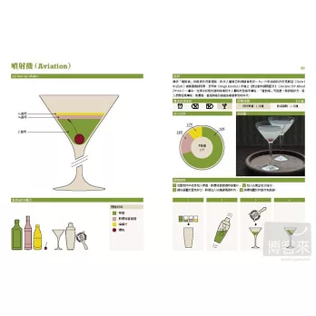 最視覺化的圖解方式呈現調酒步驟,不求多、不取巧,精選100款熱門調酒,從調配的比例、適飲的時間、酒款的故事和進階變化,到調配時間的掌握和步驟的解析,甚至連酒款的熱量都囊括其中。八種基酒:白蘭地、香檳、琴酒、蘭姆酒、龍舌蘭、伏特加、威士忌以及各種利口酒,讓每種人的口味與喜好都能被滿足。本書絕無複雜的手法、艱澀的名詞,只有人人都能一看就懂的圖解調製步驟。擁有本書,人人都可以是專業調酒師!