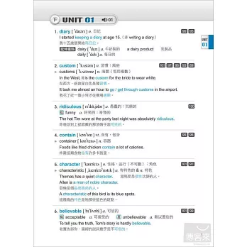 *本書另附所有單詞及例句錄音MP3 光碟一張,厚植同學聽力及口語實力。