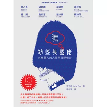 ‧知名美國人類學家之女青出於藍,潛入自身文化,幽默睿智地探掘英格蘭人的文化特性,精彩且深具啟發行。──胡台麗(中研院民族學研究所研究員)