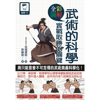 本書,從力學、解剖學、物理、認知心理學的觀點,以問題點切入說明劍術、居合術、槍術、箭術、空手道、截拳道、柔道、合氣道、太極拳等武術應該要知道的奧義。打破過去只可意會不可言傳的武術傳授心法,用科學方式分別解析拳擊、劍道、居合術、身體步法,以及破勢的巧勁。即使面對身材比自己高大的對手,也能運用本書所說的秘笈,善用科學方法而打敗對方。