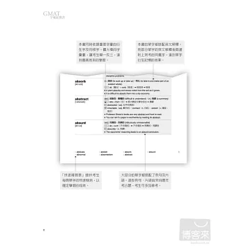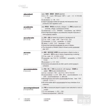 本書大部分的單字都附上曾在GMAT出現過的例句,閱讀例句除了可以幫助考生記憶單字,更能幫助考生訓練閱讀能力,並了解GMAT測驗中英文考題的難易度,一舉數得!
