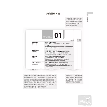 本書附有全書英文單字及中文解釋的朗讀錄音,考生可利用MP3,隨時隨地複習,有效記憶單字。