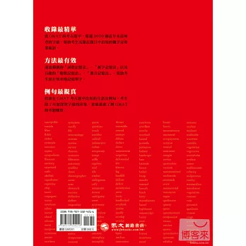 最新版的《GMAT字彙紅寶書》刪除了近年來較少在測驗中出現的冷僻字彙,重新整理出3000個高頻單字,更貼近實際出題用字,有效幫助考生準備GMAT。