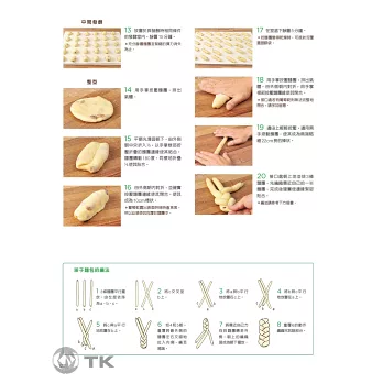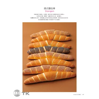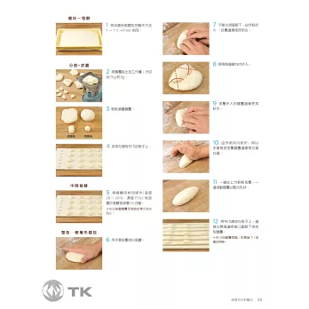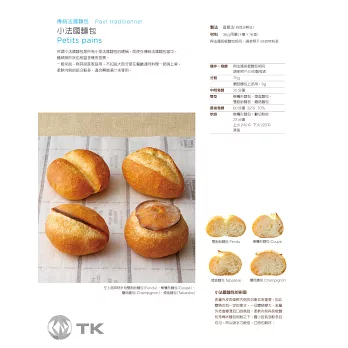 本書以麵包種類區分,涵蓋所有麵包從攪拌開始,成團、發酵、壓平排氣、分割整型、烘焙。依序分為: