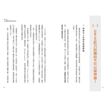 如果參考他人的經驗法則,那10個教練就會有10種說法,而我們必須從龐大的資訊中辨別真相。本書收集世界上「證據等級最高」的最新資訊,每一項都來自最全面的研究,破除所謂的「常識」,包括許多無效、或甚至傷害身體的訓練方式,不讓你的努力白費。
