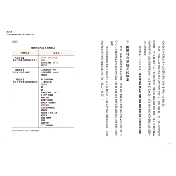 本書羅列出可靠的補給品清單,細說功能與食用方式,並列出低證據等級的增補劑,讓你在眼花撩亂的各式效果中找到正確的路。
