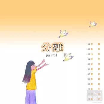 作者以圖文書方式呈現生命歷程之分離、方向、成長、完成四部份,共計48則繪圖及文字。