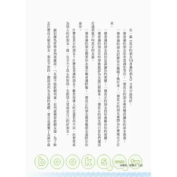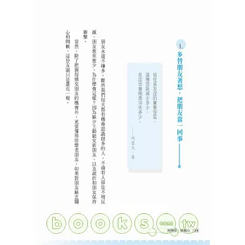 在人生的成長過程中,朋友大概是僅次於家人最親密的對象,甚至有過之而無不及。可是,當有人問到:「家庭、事業、愛情、朋友,你會怎樣排列?哪一個在你心中佔有重要的位置?」這個問題很難回答,因每個階段都有不同的排列順序,所以怎麼排列不重要,重要的是每一樣都重要,我們必須要好好珍惜。
