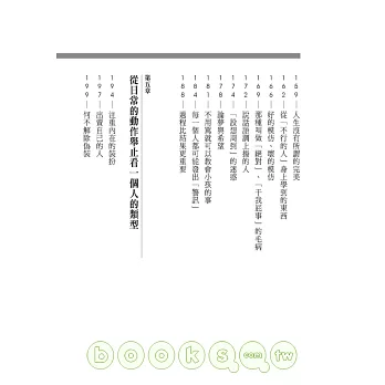 本書從一個不同於一般人的角度,來觀察「人」。他從一個人的動作、癖好、外表等外在因素,在深入觀察到這個人的內在、心理以及精神狀態。這就是所謂的「雀鬼的人間觀察力」!