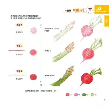 不論是畫材的使用,輕重筆壓所能營造的質感……從基礎開始做詳細解說。即使不會畫畫也不用害怕,跟著書中步驟Step by Step,就能夠越來越熟練。