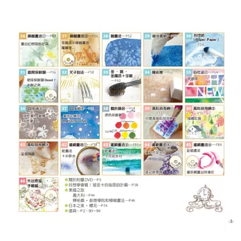 收錄各式各樣充滿特色的畫法,只要有心,牙刷、保鮮膜、叉子……都可以是實用的畫具。盡情放手揮灑吧!