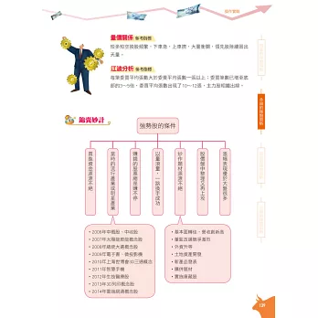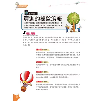 提供股市多頭、買進、賣出、空頭等四階段各招數的參考指標,並以實戰經驗輔助說明,加深讀者體會股市的漲跌循環,從中學習應對股市變化的技巧。