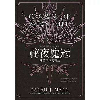 「現任亞達蘭國王御前鬥士莉莉──前第一女刺客瑟蕾娜˙薩達錫恩,究竟是誰?玻璃城堡中還有多少的暗門與祕密通道?祕密通道中又隱藏著多少危險又驚奇的真相?這些真相會改變哪些人的命運?看過《玻璃王座》第一集的你,豈能錯過得到答案的機會,進入《祕夜魔冠》一探究竟吧!」──UDN部落格人氣部落客 可蜜莉荋