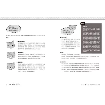 ‧全書搭配彩圖說明,清楚看懂貓咪的肢體語言、喜怒哀樂。