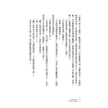 豈知轉折驟至,小男孩即將從寄宿學校返家,退學信卻早一步寄達她手上,接著又撞見陌生男子潛伏塔樓、窗外窺望,在湖邊遭遇不可思議的詭譎狀況。家庭教師陷於前任女教師莫名早逝、無解的退學謎團和一連串恐怖異象的漩渦之中,力圖振作,絕不讓邪惡力量奪走她羽翼下的純潔靈魂。