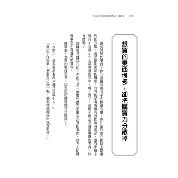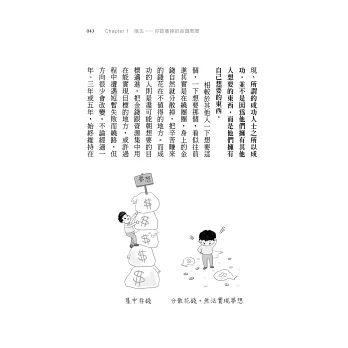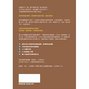 書中沒有難懂的用語及複雜的數字,不講高深的投資策略,只有令人點頭稱是、恍然大悟、引發共鳴的智慧之語。生活化的筆法搭配故事及實際案例,加上重要卻常被忽略的觀念與系統化的存錢方法,無論你處在什麼階段,都能立即開始運用: