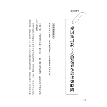 ☆愛因斯坦說:人的差異在於休憩時間。(勤奮的習慣)