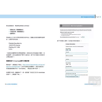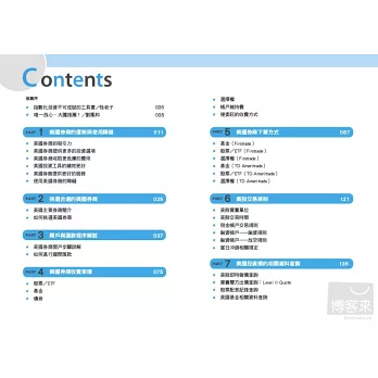 本書以圖解方式,Step by Step詳論美國券商從開戶到下單的每個步驟,並涵蓋美股交易的相關知識,與綠角本人長期以來運用美國券商投資的心得與實戰經驗分享:
