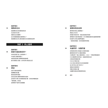 預防經濟衰退有更好的方法嗎?書中對於美國的房屋債務、失業、助學貸款等問題,提出以風險分攤原則為基礎的新型契約,可有效擺脫房市泡沫和經濟衰退的惡性循環,可說是台灣經濟政策研究者和主事者最佳的他山之石。中文版並邀請政大金融系朱浩民教授審定和導讀,提供台灣與美國金融體系的比較分析。