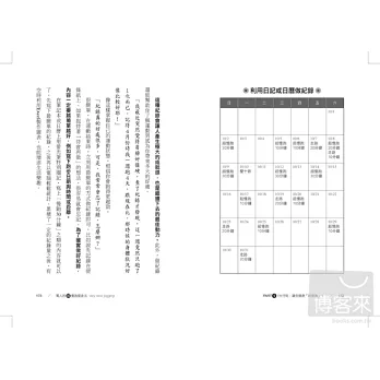 作者原本也很討厭運動,在即將邁入40歲時,朋友邀她一起慢跑,結果不但瘦身有成,還成為一位慢跑健將,創下15次跑完全程馬拉松的紀錄。不僅如此,更連續六年成功跑完5次比全程馬拉松還長的55公里「利尻島一周悠遊覽人G」活動。就連東京馬拉松也在籤運的加持下跑完2次。