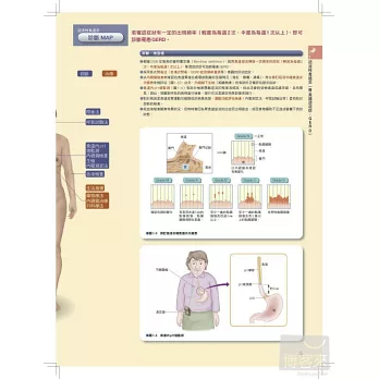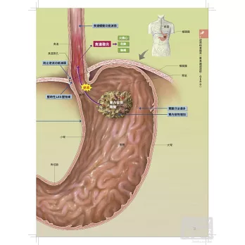 ●健康的人當胃酸或胃內容物逆流回食道時,位於食道和胃的通道上的防止逆流組織(下食道括約肌; lower esophageal sphincter;LES)能組止逆流,此組織一旦功能受損發生逆流時,將導致食道發炎。