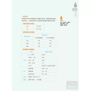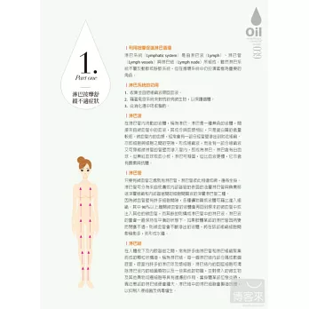 大部分的人都聽過精油有許多功效和好處,但購買時聽到店員口中那一堆植物、療效、功用,卻教人越聽越疑惑,不知該怎麼選購,買回來又怎麼用?很多人把精油抹在身上就開始亂壓亂按,這樣並無法發揮效果,這本書正能徹底解答您的這些疑惑,教您對症按摩,輕鬆踏入精油芳療的專業領域。