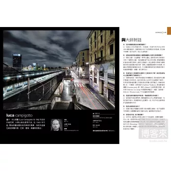 .【源源不絕的靈感】:在『與大師對話』之外,『拍攝現場』更將帶您發掘出頂尖攝影師的不傳之秘,以瞭解是如何從構想到拍出令人驚嘆的作品。