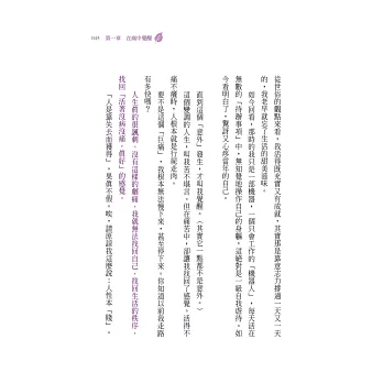 很喜歡這本書中談到「生命折返點」的概念。如書上所說:旅行到一個地方,暢遊美景的同時,也需要預估一個折返的時間,否則人會回不了家。我很喜歡這個折返點的「隱喻」。生活亦是如此,當我們一路往前衝、盡情擴展事業版圖的同時,確實需要知道何時該準備折返了,不然,人會迷失自己、前功盡棄。