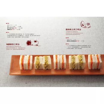 決定三明治美味的關鍵就是抹醬!因此本書從53種抹醬為起點,創造出各式各樣的三明治。詳細介紹各種抹醬需要的材料、作法、保存期限,作法非常簡單,輕輕鬆鬆就能做出獨家限定的口味。