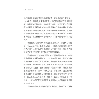 有些難忘時刻則屬私人回憶,從婚禮到一桿進洞皆為此類。對我而言,一通來自康納曼的電話就是這樣的時刻,雖然我們常交談,彼此之間也已打過數百通不復記憶的電話,但是我到現在仍清楚記得接到這通電話時,自己正站在什麼地方。1996年初,康納曼來電來通知我,他的朋友暨研究夥伴阿莫斯.特維斯基已經癌末,壽命只剩六個月。聽到惡耗,我錯愕到必須把話筒交給內人,到一旁設法讓自己恢復冷靜,好友性命垂危的消息總是令人震驚,但是特維斯基不像那種五十九歲便將辭世的人,他的行文立言向來一絲不苟,書桌上只擺著鉛筆與便箋,而且整整齊齊地平行排放,怎麼可能是行將就木的人?