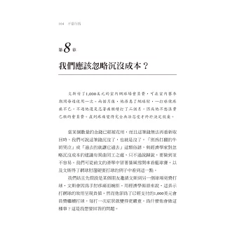 →繼續打球對財務有助益嗎?或只是覺得「浪費錢」而有罪惡感?傳統經濟學家認為應該忽略沉沒成本,偏偏人們無法忘懷。如果花錢買了卻沒用,感覺很像實際損失那些錢。我們應該要知道忽略沉沒成本是完全符合理性,甚至是必要的。