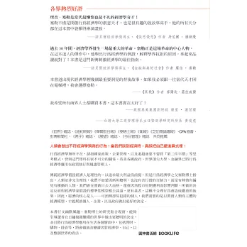 過去30年間,經濟學界發生一場最重大的革命,塞勒正是這場革命的中心人物。在這本迷人的傑作中,他舉出行為經濟學的例證,解釋學界抗拒的原因。拿起來品讀就對了!本書是這門新興刺激經濟學的最佳指南。──諾貝爾經濟學獎得主、《金融與美好社會》作者  羅伯‧席勒