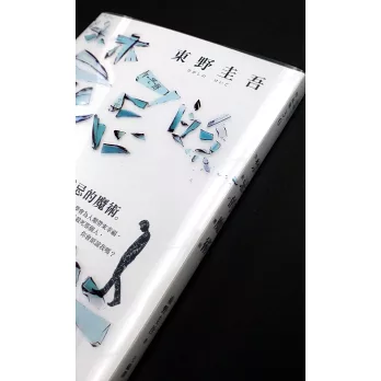 書衣為了呈現玻璃的通透感,特別採用PP材質製作,而隔著這面「玻璃」,可以看到內封上低頭沉思的湯川學,彷彿正為了夾處在人情和正義的兩難之間,不知該如何抉擇而苦惱。再翻到封底,湯川學破裂的眼鏡,又是否暗示著他一向冷靜理性的頭腦將面臨崩潰?碎裂的鏡片一路延伸到封面,巧妙地拼湊出書名「禁忌的魔術」,邀請所有讀者一起來參與這場考驗人性的魔術大秀,找出答案!(P.S.書封裡還隱藏著「伽利略」最知名的推理算式,你發現了嗎?)