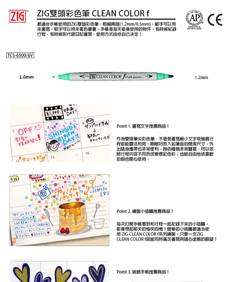 【Kuretake 日本吳竹】ZIG雙頭彩色筆粉筆色 6色組