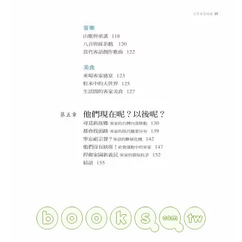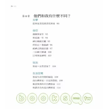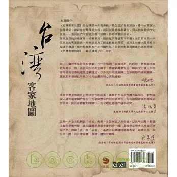 《台灣客家地圖》是台灣第一本最系統、最全面的客家通論。書中由客家人從那來,如何在口灣落地生根,如何與其他族群融合,與其他族群的文化差異,一直到他們所面臨的當代挑戰,都有精闢的分析。