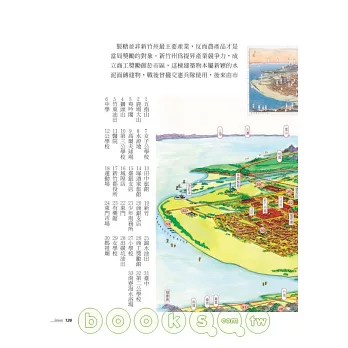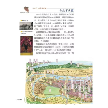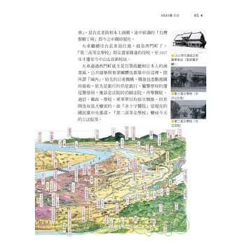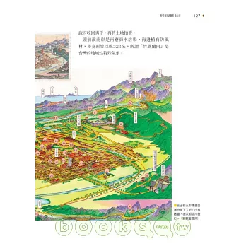 本書精挑三十八幅1930年代日本鳥瞰圖全盛時期的代表作。當您展開這些繪卷,就像突然凌空飛起,以45度俯角鳥瞰台灣,您可以清楚看到全台灣的樟腦產地、台北州裡的昭和橋、清水街上的郡役所、新高阿里山山腰的神木驛……,這些詳實的地理資訊,正是日治時期台灣最一覽無遺的面貌,也足見日本政府對台灣的經營的與掌控。