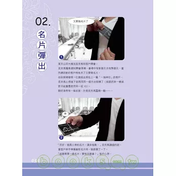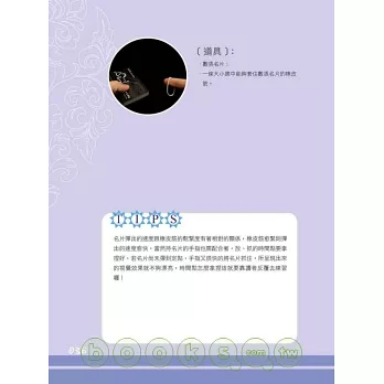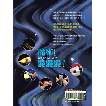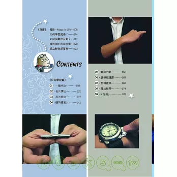 本書以校園上班族的生活為發想,把魔術帶進生活中,ex:如何把名片變出來、如何把錢撕開再變回來……一些簡單的小魔術,平添生活樂趣,加深別人對你的印象。