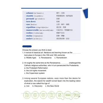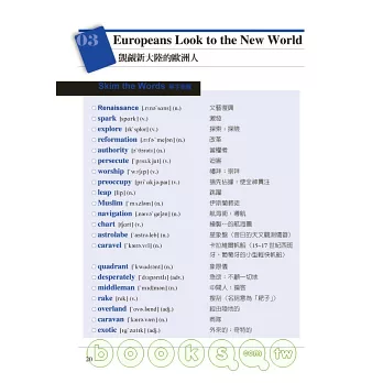 本書從美國中學課本取材(相當台灣小學五年級至國三),因為這時期所學的知識是最多元、最基礎的階段,語言深度也適合台灣學生的程度。本書文章內容涵蓋數理文史,讀者在做主題性閱讀時,廣泛接觸日常、課堂使用詞彙,無行中內化成自然語法,豐富相關背景知識,英文也可以和美國學生一樣好!