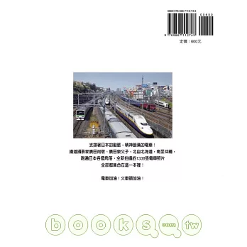 本書將馳騁全日本支撐交通動脈的JR、私鐵鐵道車輛等,依首都圈、北陸、東海、關西、九州、沖繩、東北、北海道等地區,分章刊載日本各地電車全彩照片共計1338張之多。書內還有日本鐵道的種類、各式電車的「系」、「型」意義、電車編號之代表含意等,許多鐵道相關的知識。讓讀者在欣賞多彩多姿的列車之餘,也能認識日本電車的更多知識。