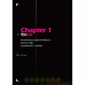 這本書所要呈現的就是關穎式的觀點,她眼中所見的上流社會,從相親到豪門婚禮;從上流派對到偷情與包養......16個關於上流社會的關鍵字,都因為關穎的大膽解構而真實顯像,我們才發現其實人們眼中的上流社會,除了財富與喧嘩,也有它的寂寞與哀傷。