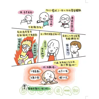 為了契合各行各業的精神,封面祭出超有趣的復古抓週遊戲,閱讀前可試試手氣,跟著超卡哇以的嬰兒彎彎探索未來,預測命中注定的行業別。