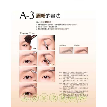 繼「裸妝聖經」徹底教學後,Kevin針對不同眉型、各種眼部線條、睫毛、眼線、頰、唇、修容到色彩的變化,推出史上最詳盡最完整的教學步驟,教你打造超迷人的完美妝容!