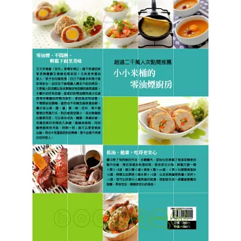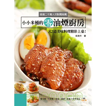 作者在自己的「小小米桶的寫食廚房」部落格中分享許多中西、異國各式菜餚的料理法,獲得非常廣大的迴響,配方詳細、口味實在,累積了超過二千萬人次的點閱,更經得起千萬人次試作的肯定。繼2009年暢銷熱賣的「新手也能醬料變佳餚90道:小小米桶的寫食廚房」後,2010的「小小米桶的零油煙廚房:82道美味料理精彩上桌!」,一樣收錄了從未在部落格露出、保證美味的全新菜餚,不藏私的完整配方與詳盡步驟圖,絕對是一本兼具實用、美味又能健康飲食的食譜書。