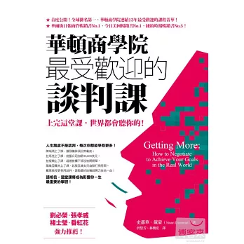 如果你想在商場上取得更好的交易條件,如果你希望在人際關係中獲得更多的主導權,如果你想讓家庭關係、親子關係更融洽,戴蒙教授的談判技巧,能給你超乎想像的優勢!