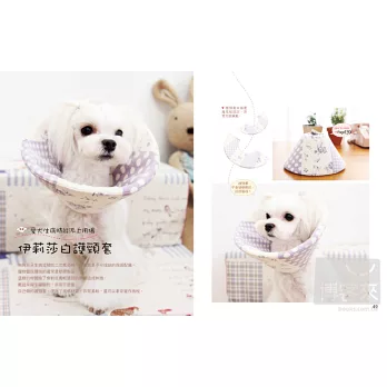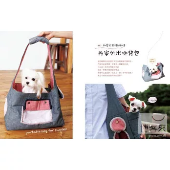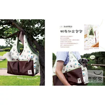 除了衣服以外,書中還特別設計了許多生活用品:像狗狗最愛的骨頭玩具、球球和飛盤,不用擔心牠們亂咬東西;自己製作專用踏板,讓狗狗活動更方便;生病時能派上用場的護頸套,避免狗狗二度受傷;可以和愛犬幸福散步,最實用的散步專用包包、丹寧外出側背包等等,只要買齊布料,搭配實物大小的紙型,手縫就能完成這些生活用品囉!