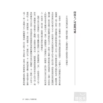 真實精神旅行達人──船橋彰這本新作要告訴你,其實印度從來不是你所以為的那樣。她有千年古今貫串,東西文明交融的街道巷弄、宮殿、廟宇及民居;她有性格可愛又可惡、天生就如頂尖模特兒般上相的上億居民;她有繽紛耀眼的文化與能舞動全身細胞的音樂;以及幫助旅人擺脫灰暗塵囂、重拾生活熱情的神祕魔力。