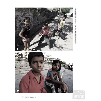 印度人在鏡頭前總能擺出生動的表情和動作,那股天真流露的氣息,讓每張照片有了絕佳的模特兒,彷彿在印度只要會按快門的,都可以成為人像攝影師。印度人喜歡跟旅人搭話聊天,也許因為貧窮沒法越洋旅行,卻能因為交流神遊收集各國風景而大感滿足。