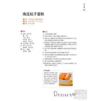杜老師私藏祕方大公開,分為新手初門、技巧進階、烘培高手三大部分,近四十道蛋糕,並同場加映十款點心,讓你一學就會、一書上手,烤、蒸、煎等方式都行,絕對讓你愛不釋手,低糖不油膩,好吃不發胖。